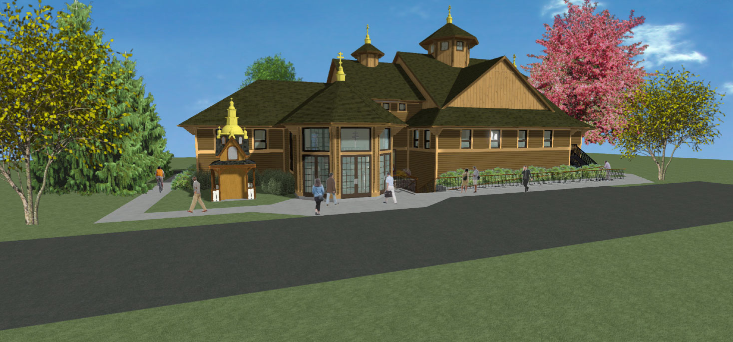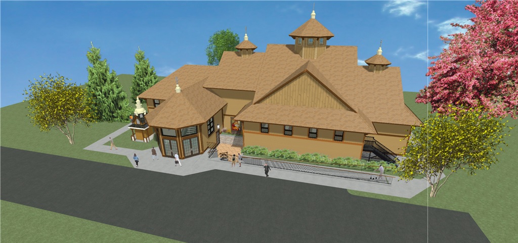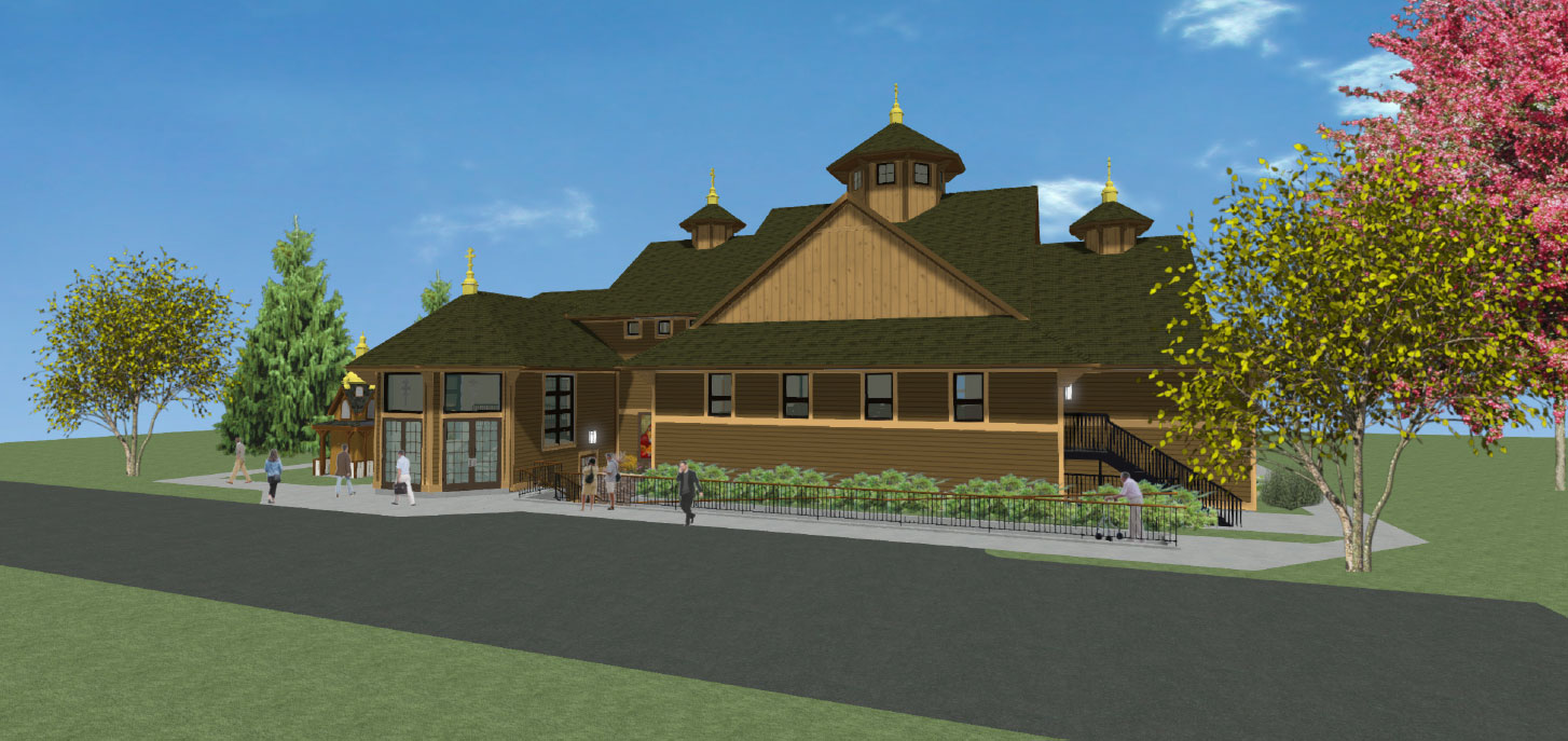Тhe colors for the roof and sides of the new church/shrine will be the colors shown on the upper renderings.